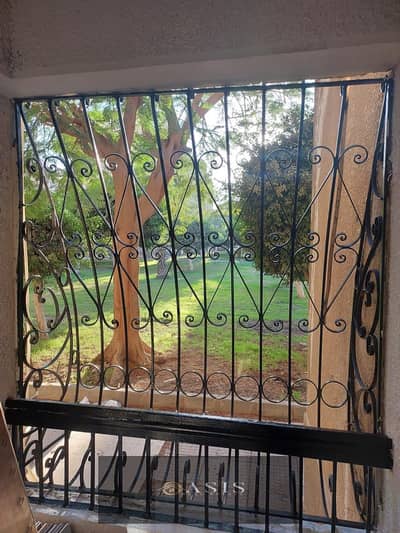 ( الريسيبشن به بلكونة وغرفة الماستر بها حمام خاص وبلكونة ) جميع الشبابيك والبلكونات مؤمنة بحديد حماية .