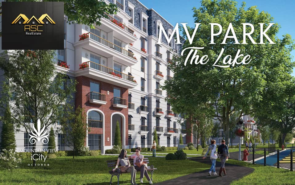 شقة ارضي بحديقة دبل فيو برايم لوكيشن فى ماونتن فيو اي سيتى اكتوبر - مرحلة MV the lake - موقع مميز جدا فيو رائع على النافورة