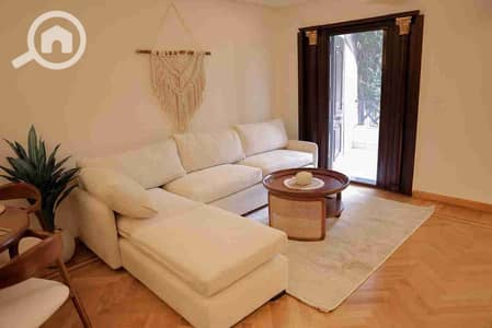 شقة أول استخدام للإيجار في الرحاب – المرحلة الخامسة، أرضي مع جاردن، مجهزة بالكامل بأجهزة ألمانية ومكيفات سخن/بارد.
