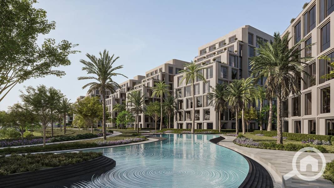 مساحة الشقة 133 متر، تتكون من غرفتين نوم، وتتميز بإطلالة مباشرة على اللاندسكيب والـ Water Features داخل الكمباوند، مع تصميمات عصرية وتشطيبات متميزة داخل مشروع سكني متكامل.