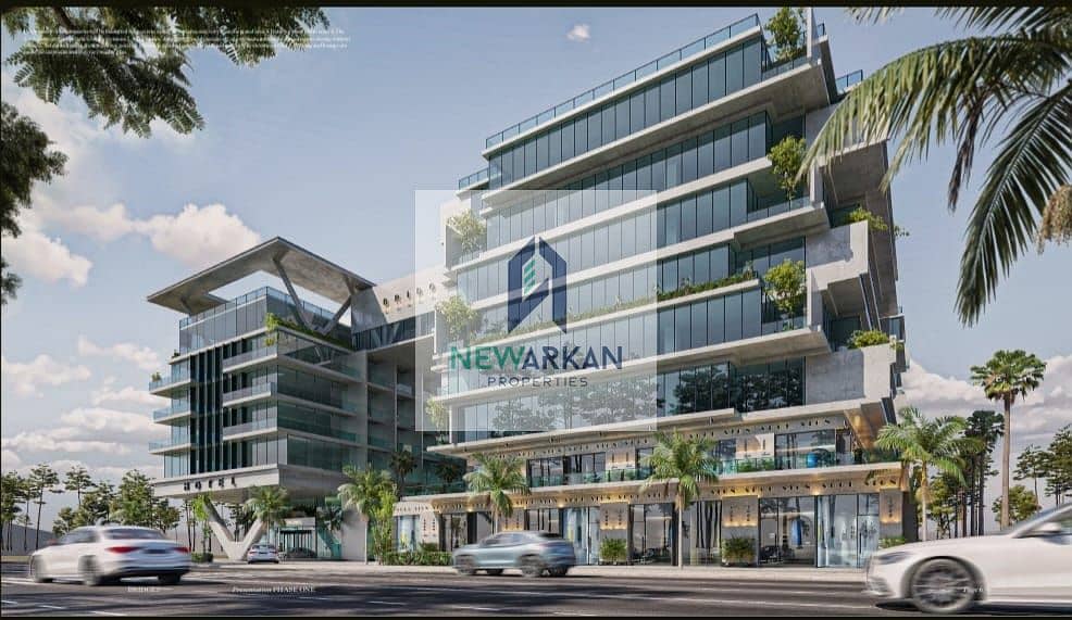 عياده للبيع 58 م علي المحور مباشرة بجوار اركان بلازا موقع مميز وحيوي