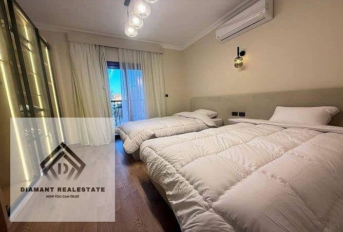 مكونه من 3 غرف منهم غرفه ماستر / 3 حمام / دريسينج رووم / ريسيبشن / تراس علي فيو
