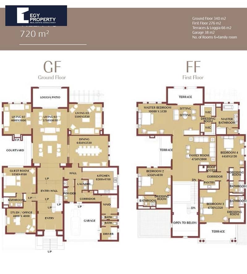 المساحة المبنية: ٧٢٠ متر مربع