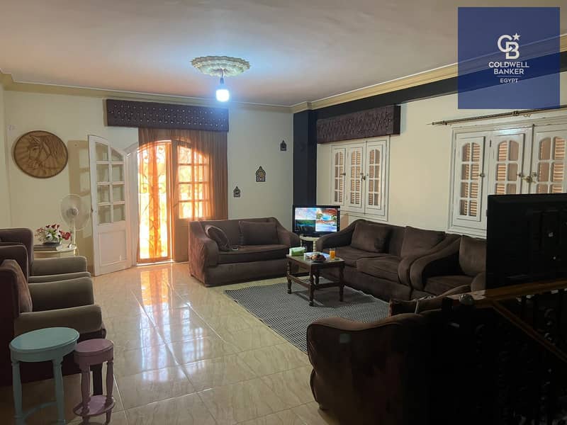تقسيمتة : 5 غرف للنوم منهم اتنين ماستر + 4 حمامات + 2 ريسبشن + 2 مطبخ