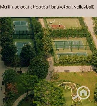 يتكون من دور ارضي بجاردن + دور اول + روف بأطلاله مفتوحه علي حمامات سباحه ومساحات خضرا