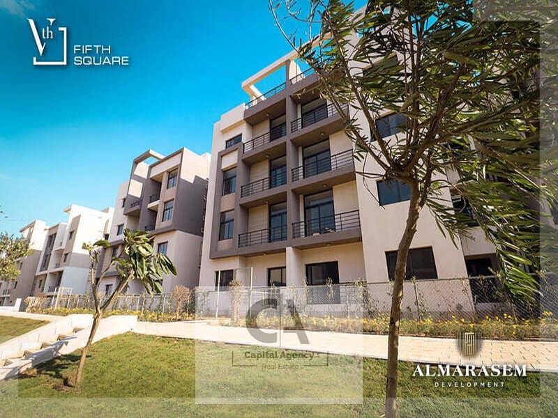 شقه للبيع ارضي بجاردن بسعر الكاش في كمبوند فيفث سكوير استلام فورى في قلب الجولدن سكوير متشطبه بالكامل مع المراسم | Fifth Square