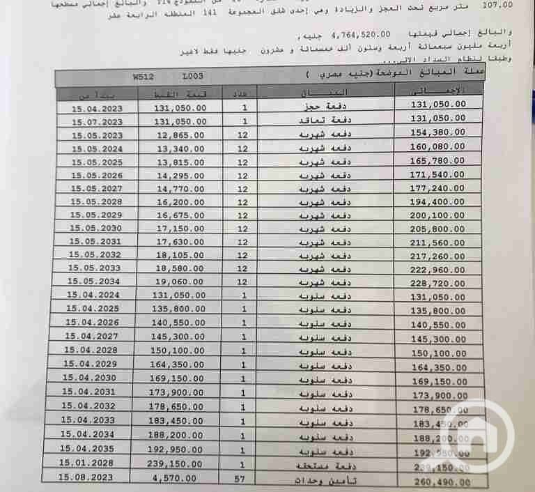 شقة ١٠٧م عقد ٢٠٢٣ دور تانى