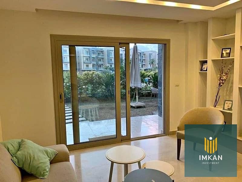 شقة للبيع ارضي بجاردن استلام فورى فيو على حمام سباحة فى كمبوند جاليريا مون فالى التجمع الخامس