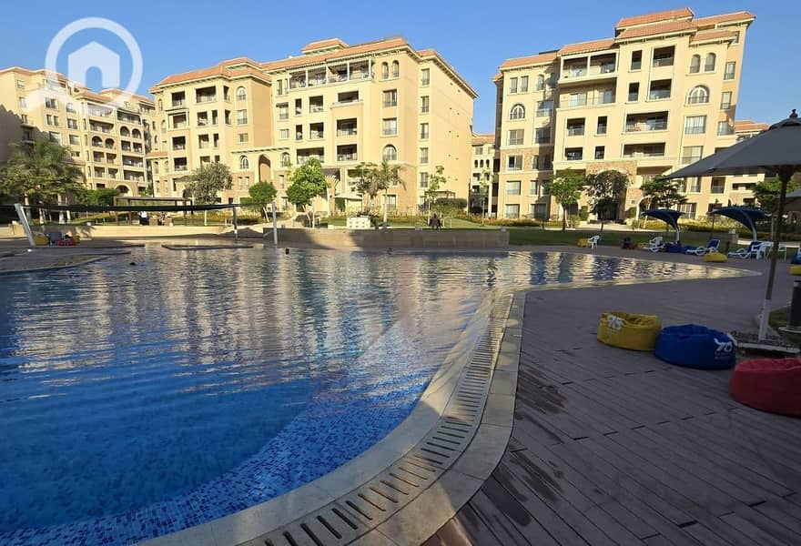 شقة للايجار فاخرة تطل علي حمام سباحة ارخص سعر في السوق موقع متميز في ناينتي افينيو - التجمع الخامس - القاهرة الجديدة - تشطيب فاخر