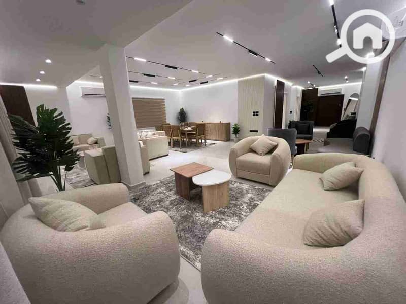 أما الروف فيحتوي على غرفة نوم مستقلة بحمام خاص، مما يجعله مثاليًا للاستضافة أو الاستخدام الخاص. الفيلا مفروشة فرشًا راقيًا بالكامل وجاهزة للسكن الفوري، ومعروضة بسعر غير قابل للمنافسة مقارنة بالمستوى والموقع داخل مدينتي