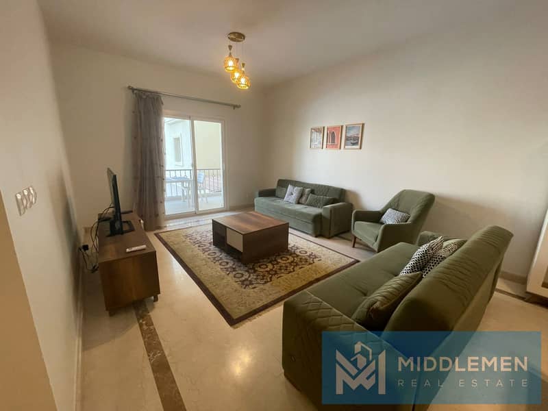 للايجار شقة 133متر متشطبة بالكامل بالفرش علي حمام سباحة في كمبوند ميفيدا القاهرة الجديدة - Mivida New Cairo