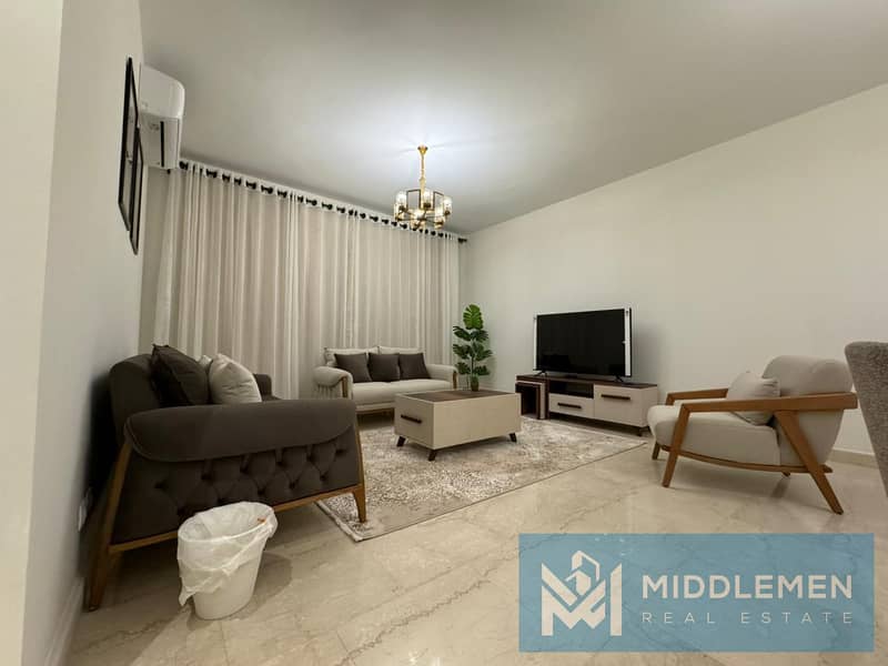 للايجار شقة 140متر دور اول متشطبة بالكامل بالفرش موقع مميز في كمبوند ميفيدا القاهرة الجديدة - Mivida New Cairo