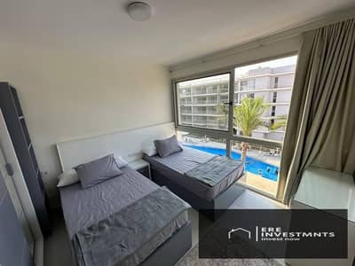 شاليه بحري مفروش بجميع الاجهزه للبيع علي البوول مباشره في مراسي (مارينا ويست ) الساحل الشمالي - جاهز للاستلام والسكن فورا باقل سعر