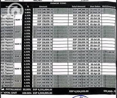 القسط كل 3 شهور: 260 ألف جنيه