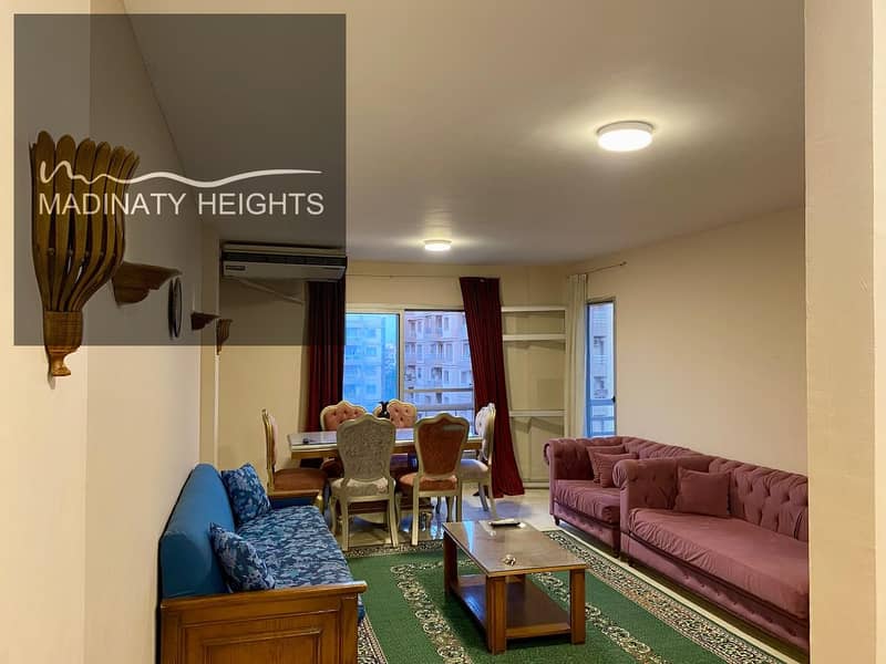 شقة 124م للإيجار مفروش في مدينتي B6 جاهزة للمعاينة ، 3 غرف نوم و2 حمام، تشطيب شركة كامل بالفرش والتكييفات والأجهزة