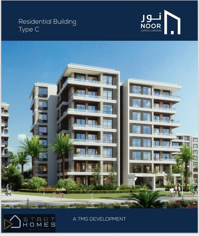 شقة للبيع بمدينة نور Smart city نظام تقسيط علي 10 سنة مساحه 182 متر بفيو جاردن وبارك