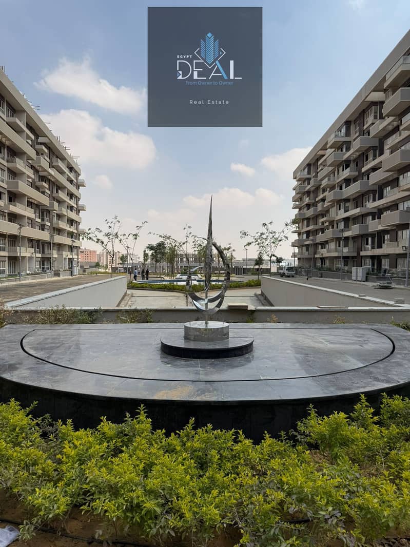 شقة للبيع استلام فورى بمقدم 10% فقط بجوار الجامعة البريطانية وعلي المحور المركزي دايركت و بجوار النهر الاخضر في اميز لوكيشن بالعاصمة الادارية