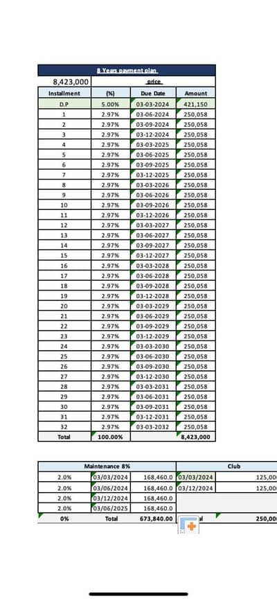 نظام الدفع: مطلوب كاش (المدفوع) مليون و921 ألف فقط + القسط المستحق.