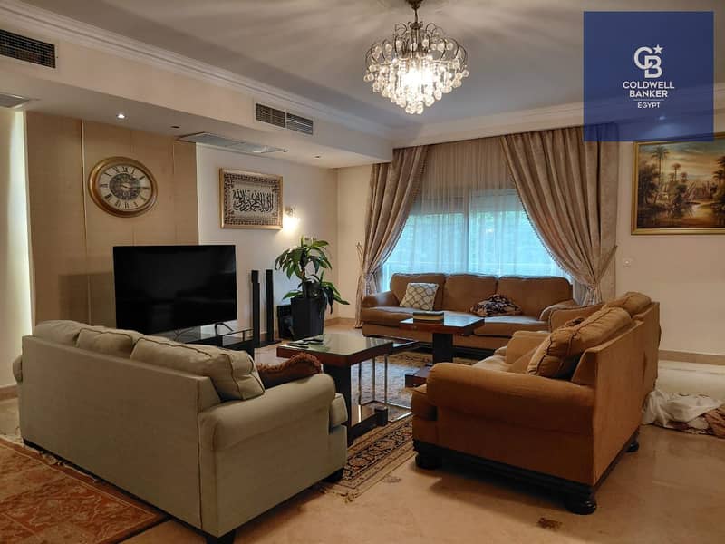 دوبلكس 412 م للبيع في الحي التاني فيلات بالفرش و الأجهزة والتكيفات في التجمع الخامس - خطوات من شارع التسعين الجنوبي