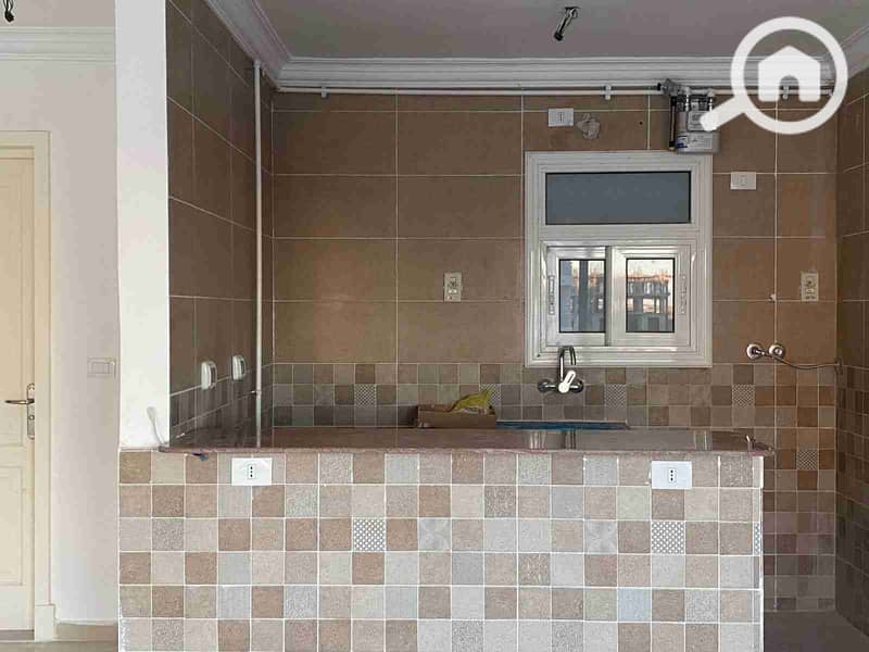 اول سكن مكونه من 2 نوم و 2 حمام مطبخ ورسيبشن و 2 تراس ،، مطبخ امريكان ,,بها غاز طبيعي و عدادات كهرباء و مياه