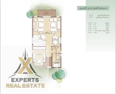 الدور الأرضي : استقبال +حمام ضيوف + مطبخ + استقبال +غرفة مربيه