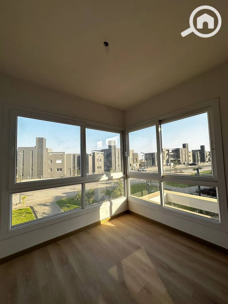 نسبة المباني لا تتعدي 20% من مساحة الكمبوند والباقي مساحات خضراء كبيرة وحمامات سباحة وخدمات