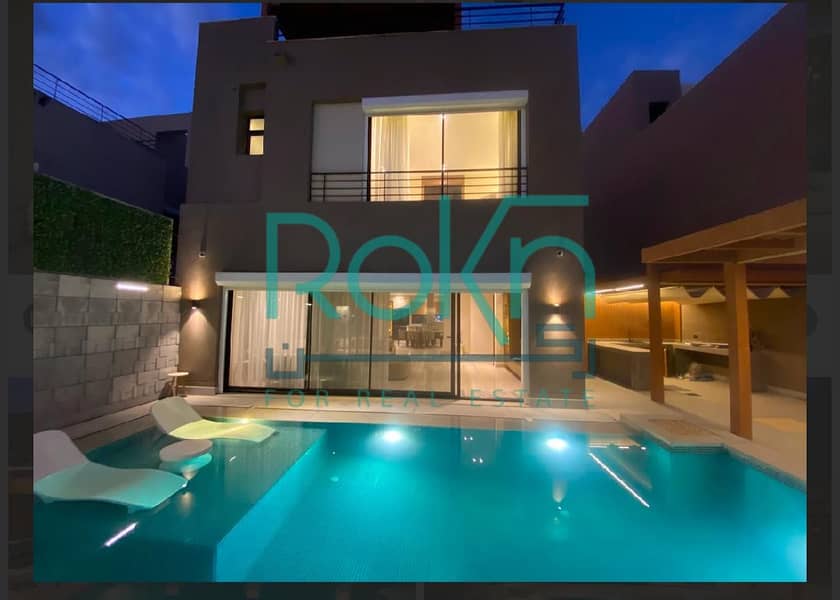 فيلا للايجار مشتطبه سوبر لوكس بحمام سباحه اول سكن كمبوند ذا كروان بالم هيلز ٦ اكتوبر