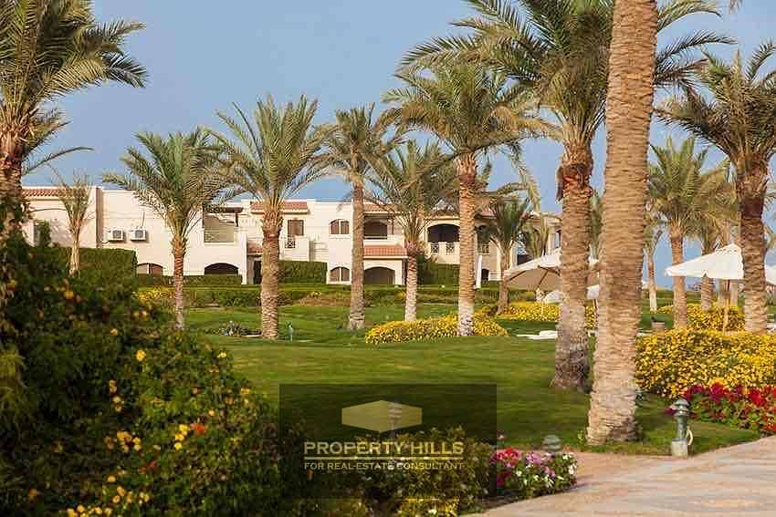 الشاليه داخل منتجع متكامل الخدمات يتميز بتصميمات معمارية راقية، ومساحات خضراء واسعة، وبحيرات صناعية، مع شواطئ مميزة على البحر الأحمر.