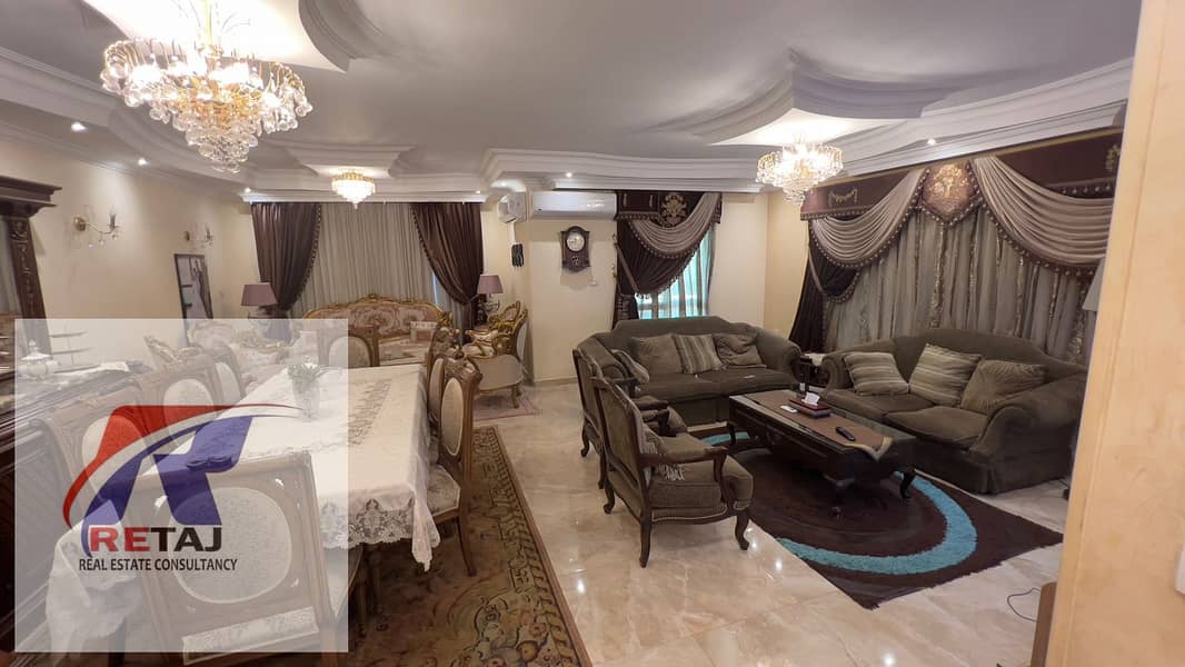 شقة للبيع لوكيشن مميز في فيلات النرجس 5 علي فيو جاردن كبيرة هاي سوبر لوكس بالقرب من ديار المخابرات ومدرسة كابيتال