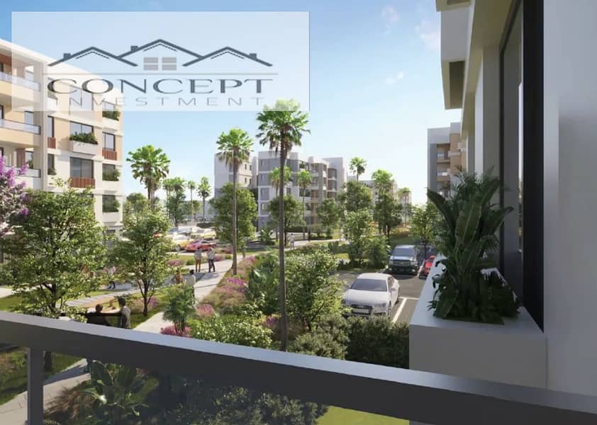 شقة ١٣٢ متر متشطبه بالتكيفات إطلالة على منظر طبيعي للبيع في كمبوند البروج