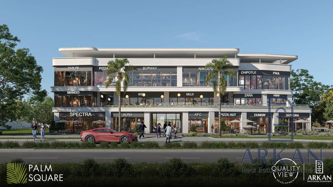 على ممشى ال R4 السياحي امام داخله المنتزه وكمبوند الحى الايطالي وكمبوند دجله جاردينز وباردايس علي مساحه 3050 متر واجهه المول 70 متر