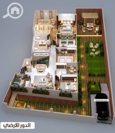 (ريسبشن واسع + 4 غرف نوم + غرفة معيشة + ليفينج + مطبخ + 4 حمامات)