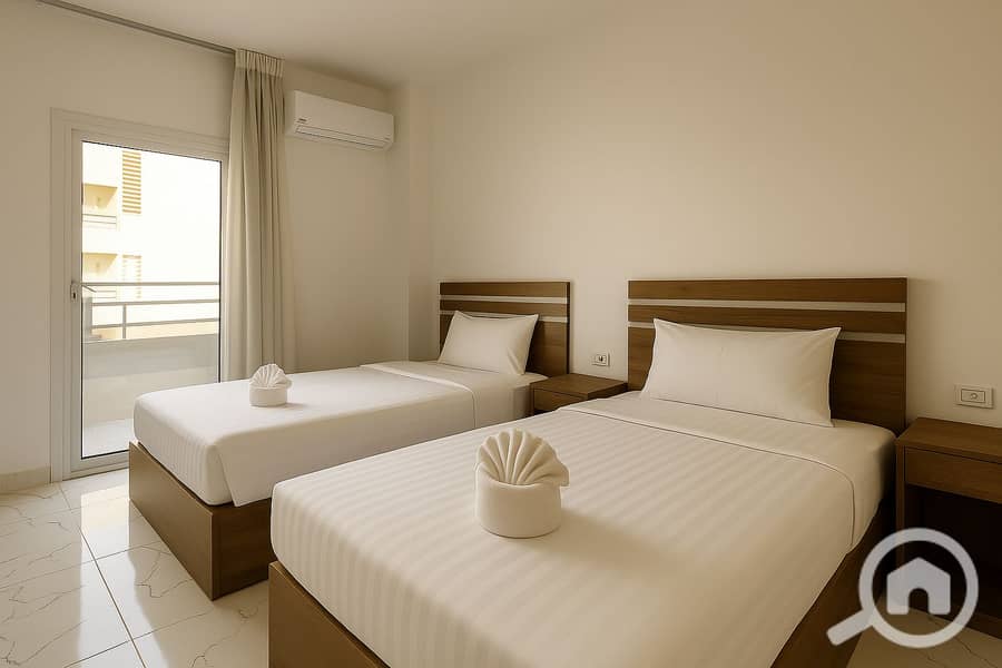 شقة واسعة من غرفتي نوم في الطابق الثاني من لا بريستيجيا،الغردقة يحتوي على 3 أسرة و3 أسرة وغرفة معيشة مريحة ومطبخ مجهز بالكامل وشرفة خاصة كبيرة. مصعد في المبنى قصير سيرا على الأقدام إلى مقاهي الشاطئ والمحلات التجارية الرائعة للعائلات من المجموعات الصغيرة