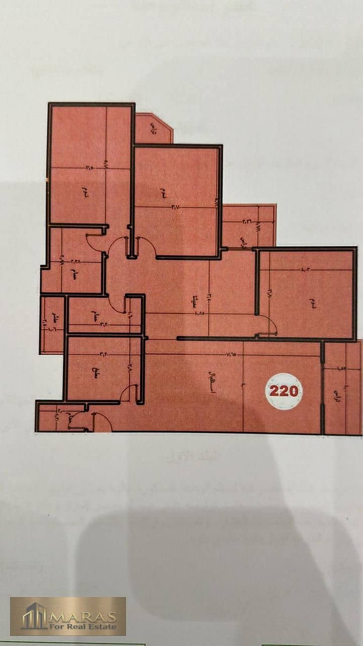 شقة للبيع بمساحة 220 متر مربع بالمعراج خلف البنك الأهلي، الطابق السابع – 3 غرف نوم، 3 حمامات، ريسيبشن 3 قطع، مطبخ مفتوح على ليفنج، تراس في كل غرفة.
