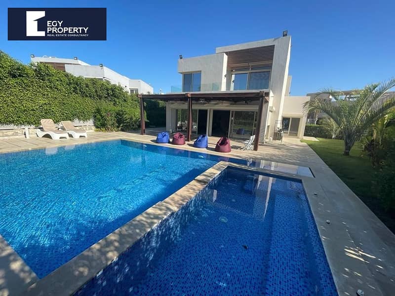فيلا للبيع مستقلة مفروشة بالكامل إستلام فوري في هاسيندا باي بالم هيلز الساحل الشمالي