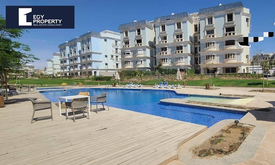 شقة للبيع بإطلالة على المسبح جاهزة للسكن قي ماونتن فيو القاهرة الجديدة التجمع
