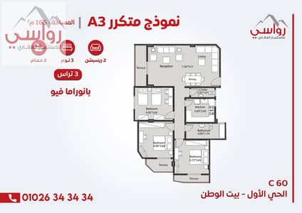 شقة تحفة فنية 165م ناصية بانوراما فيو مفتوح وبحري صريح في أميز أحياء بيت الوطن الحي الاول
