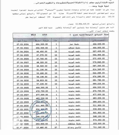 اجمالي المدفوع: اقساط 2,233,350 + صيانة 149,760 = 2,383,110 جنيه