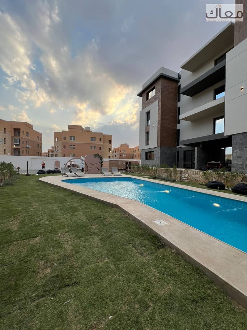 - الموقع: داخل كمبوند راقٍ مباشرة على محور الجامعة – خطوات من POINT 90 والـ AUC.