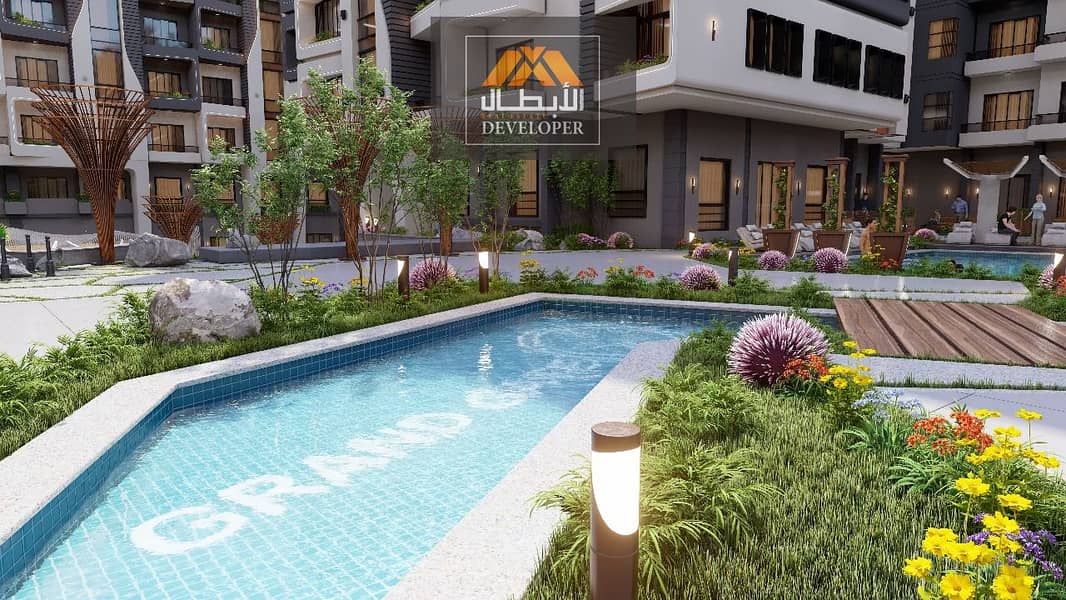 امتلك وحدتك 65م بإطلالة مميزة على حمام السباحة داخل كمبوند جراند جيت – على طريق المطار، بجوار كارفور والممشى السياحي واستفيد من أكبر خصم للكاش 25% لفترة محدودة