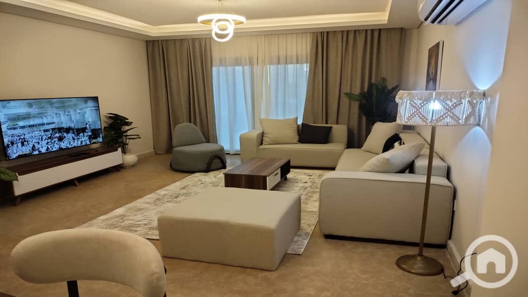 شقة مفروشة ارضي بحديقة للايجار في الشيخ زايد بجانب جامعة القاهرة و مول اركان و امريكانا بلازا داخل كمبوند أبراج زد ويست للمطور نجيب ساويرس