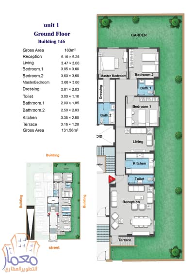 المساحة: 180 متر