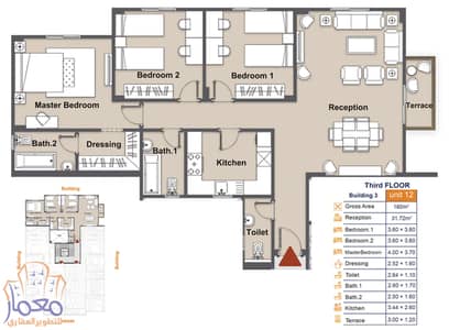 شقة سكنية بمساحة 160 متر، تصميم عملي يناسب السكن العائلي، في موقع راقٍ قريب من المحاور الرئيسية والخدمات.