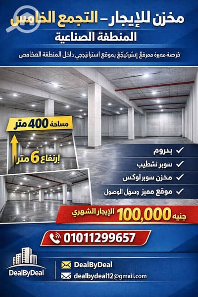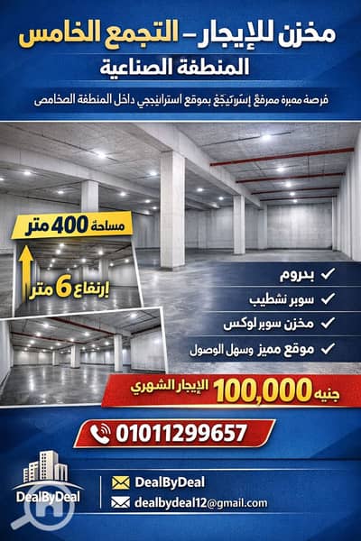 مخزن للايجار التجمع الخامس الالف مصنع مساحه ٤٠٠م ارتفاع ٦متر