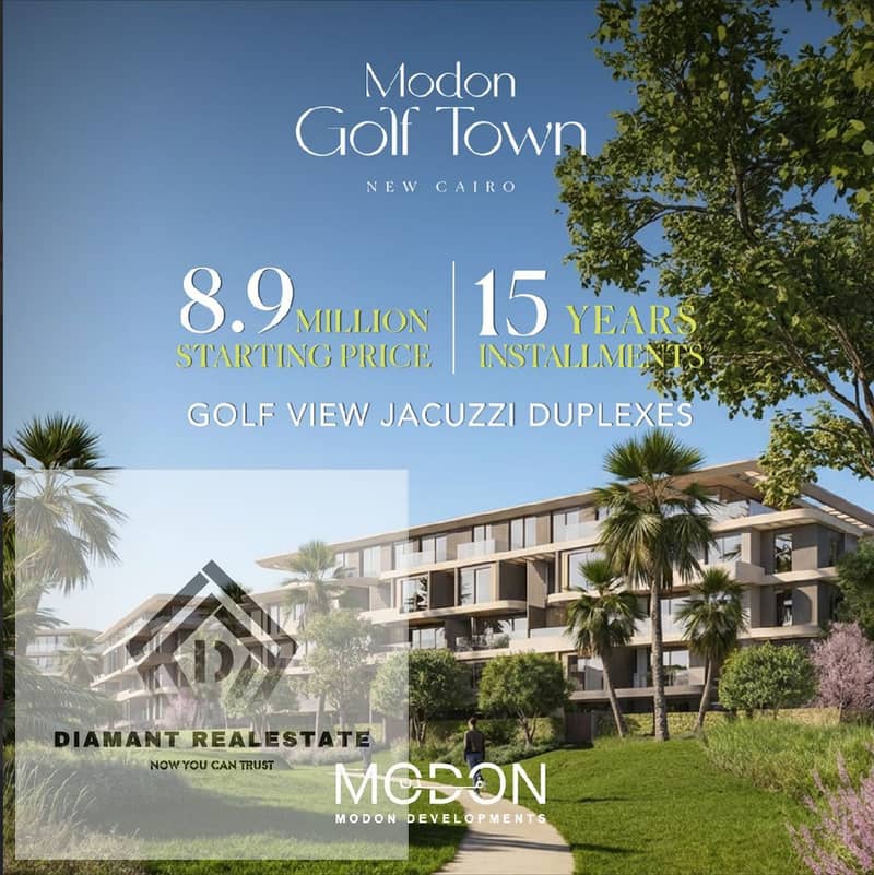 دوبلكس للبيع في التجمع بجاكوزي خاص باول جولف جمبوند في التجمع السادس بالتقسيط علي 15سنه دقايق من ميفيدا وهايد بارك