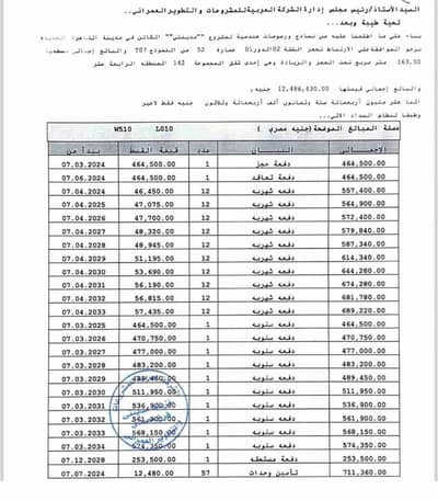 اجمالي المدفوع: اقساط 2,233,350 + صيانة 149,760 = 2,383,110 جنيه