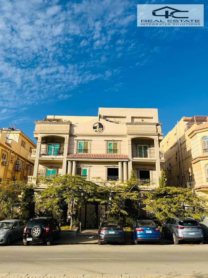 شقه للبيع بالياسمين ٤ فيلات التجمع الأول تشطيب ألترا سوبر لوكس فيو علي جاردن كبيره اماميه و خلفيه شامله العفش والاجهزه والتكييفات عدادات كهرباء ومياه