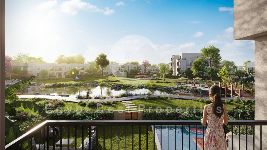للبيع شقة غرفتين مع حديقة خاصة علي 10 سنوات تقسيط في او ويست اوراسكوم اكتوبر