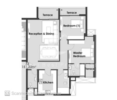 2 غرف نوم (1 ماستر) + ٣ حمام + 3 تراس