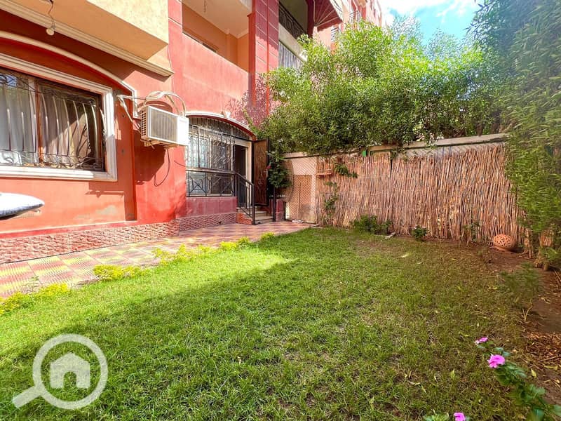 شقة للإيجار مفروش دور أرضي بحديقة رائعة بكمبوند روضة زايد بالشيخ زايد